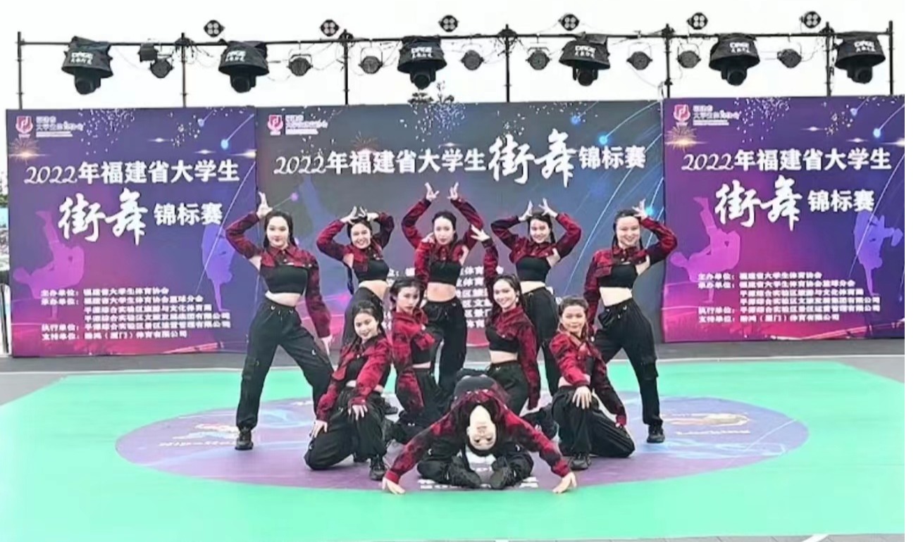 5月27日-29日,由福建省大学生体育协会主办的“2022年福建省大学生街舞锦标赛”总决赛在平潭落下帷幕。诚毅学院代表队由教练员连瑞华、陈根炎带队参加。诚毅学院代表队17名队员共取得了规定组Street Jazz一等奖,规定组Locking一等奖,规定组Hippop二等奖以及原创齐舞三等奖;管理系陈子航同学在竞争激烈的斗舞中,经过6轮Battle,最终荣获1V1 Breaking斗舞亚军的佳绩。