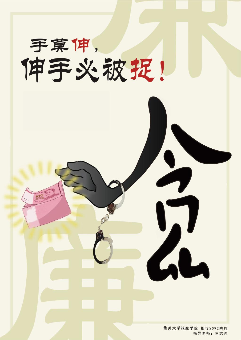 近日,我院体育与艺术系学生创作的廉洁文化主题海报作品获厦门市纪委监委网站“新时代廉洁文化”专栏展播。获展作品分别是:《手莫伸,伸手必被捉》《廉政牢笼关贪虎》《贪心走向犯罪》《监督利剑》。作品以独到的创意思维展示廉洁文化深刻内涵,反映我院师生崇俭尚廉、崇德向善的价值理念,展现我院廉洁文化建设阶段性工作进展。学院将继续组织创作更多廉洁文化精品,精心打造具有诚毅特色的廉洁文化品牌,助推廉洁文化建设取得新的成效,以优异成绩迎接党的二十大胜利召开。