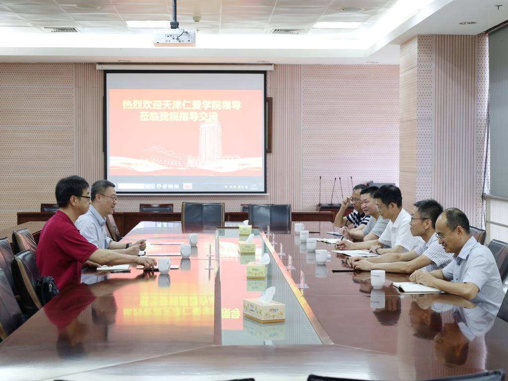 7月1日,天津仁爱学院党委书记李武等一行来我院交流访问。我院院长梁新潮、党委副书记颜承志及相关部门负责人接待了来访客人。