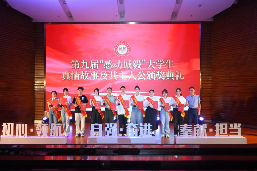 颁奖典礼共分为《初心·领航》《自强·奋进》《奉献·担当》三个篇章,现场获奖个人和团队通过短视频和采访,用励志、奋斗、拼搏的精神为师生们讲述着一个又一个感人至深、催人奋进的故事。《初心·领航》中展现了勤工助学中心等3个团队多年来为学院发展、学生成才默默耕耘,始终不忘初心,砥砺前行,提灯引航,接续奋斗的故事;《自强·奋进》中展现了张乐乐等3个主人公无论身处何种逆境、遇到何等挫折,永远自强奋进,百折不挠,实现梦想的故事;《奉献·担当》中展现了徐菁等4个主人公践行志愿服务精神,知行合一,服务困难群体,无私奉献,勇于担当起新时代青年责任的故事,充分展现了新时代诚毅学子的精神风貌和优良品格。一个又一个感人肺腑、催人奋进的故事让全场观众深受感动,雷鸣般的掌声是对这些获奖个人和团队最大的肯定。