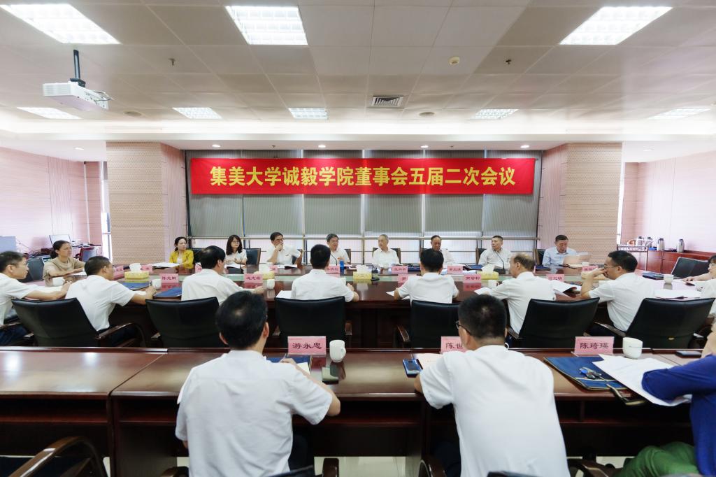 7月6日上午,集美大学诚毅学院董事会五届二次会议在景祺楼17楼会议室召开。集美大学党委副书记、校长、诚毅学院董事长李清彪出席并主持会议,荣誉董事长张向中,荣誉董事长王景祺的代表、荣誉董事长曾琦的代表,集美大学党委副书记、诚毅学院常务副董事长郑志谦,副董事长陈少宏、罗钫,董事陈延行的代表,监事会副监事长黄晞、孙吉龙的代表及其他董事、监事参加会议。