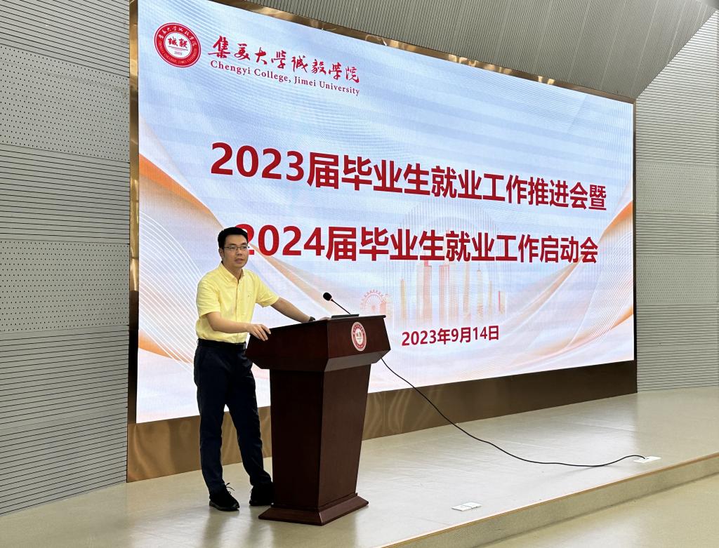 9月14日上午,2023届毕业生就业工作推进会暨2024届毕业生就业工作启动会在景祺楼105报告厅召开。院党委副书记、院长姚进忠出席会议并讲话,院党委副书记颜承志主持会议并部署工作。教务部、学工部、团委负责人,各教学系(院)主任(院长)、书记、就业联系人、全体辅导员,就业办全体人员参加会议。