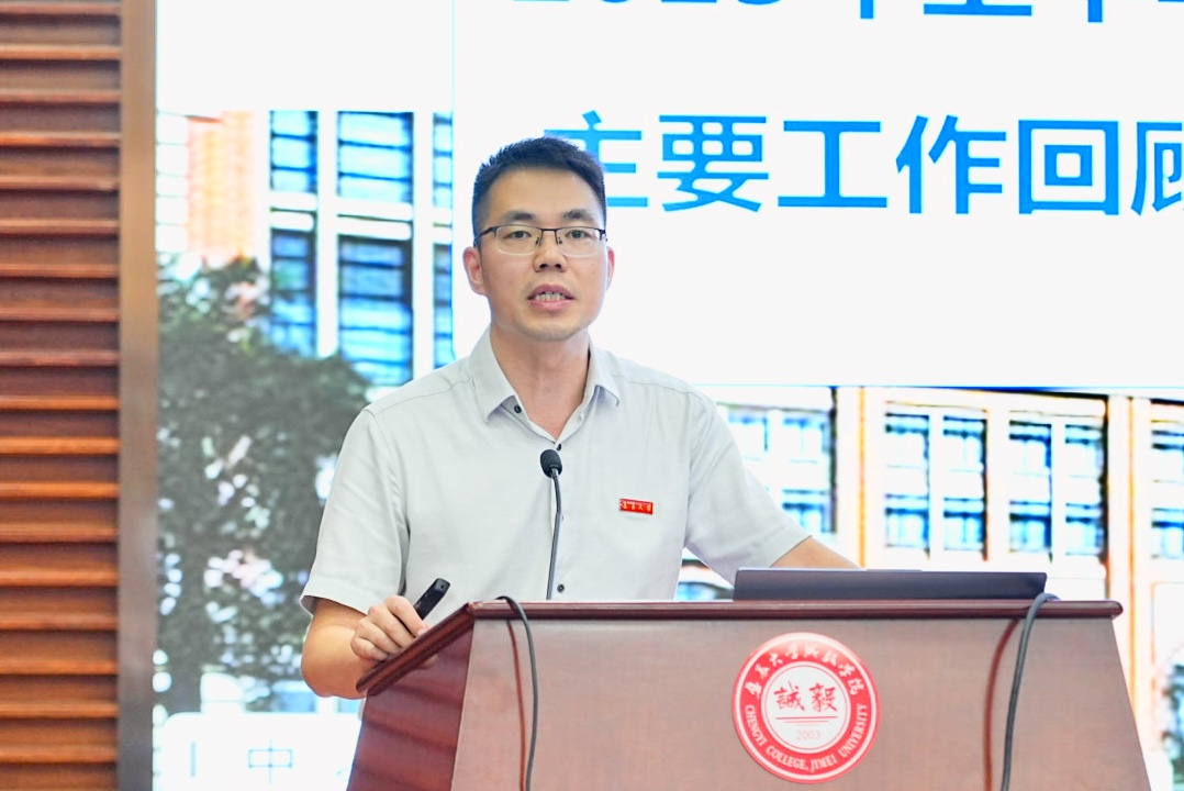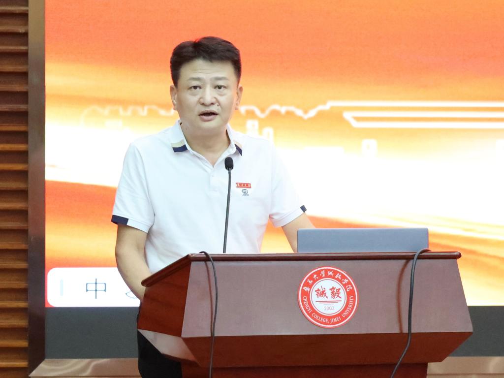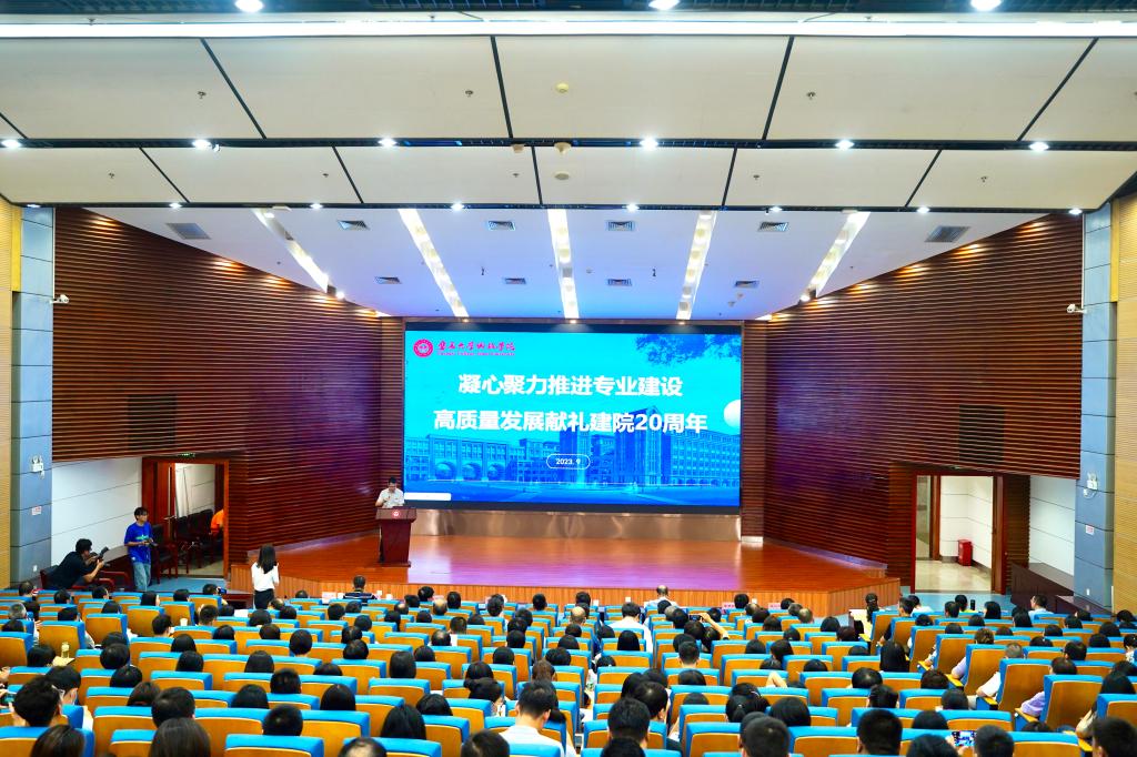 院党委副书记、院长姚进忠教授作题为《凝心聚力推进专业建设 高质量发展献礼建院20周年 》主题报告,简要总结上半年的主要工作、布置本学期的主要工作、并对如何推进专业建设作了具体部署。他强调:一、筑牢坚强堡垒,发挥党建领导力。二、推动深化改革,激发办学内动力。三、聚力人才培养,提高办学竞争力。四、完善保障体系,夯实发展支撑力。他指出:专业建设要紧密围绕区域经济社会发展需要,按照“充实内涵、注重应用、扶优强特、争创一流”的建设思路,以质量提高和内涵建设为核心、争创一流为目标,优化专业布局,强化专业特色,转变专业建设理念,不断提高专业建设整体水平:一、 强化专业建设顶层设计,构建专业发展体系。二、建立专业建设推进机制,保障专业培养质量。三、夯实专业课程与教学体系,做强人才培养。四、建立专业监测评估机制,激发专业建设活力。五、加强师资队伍建设,集成人才培养合力。