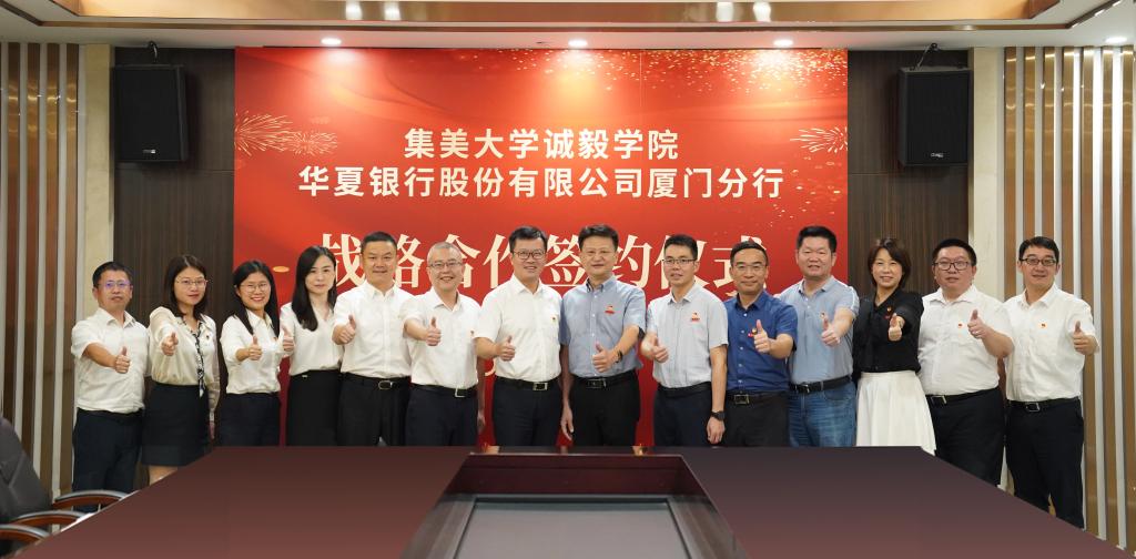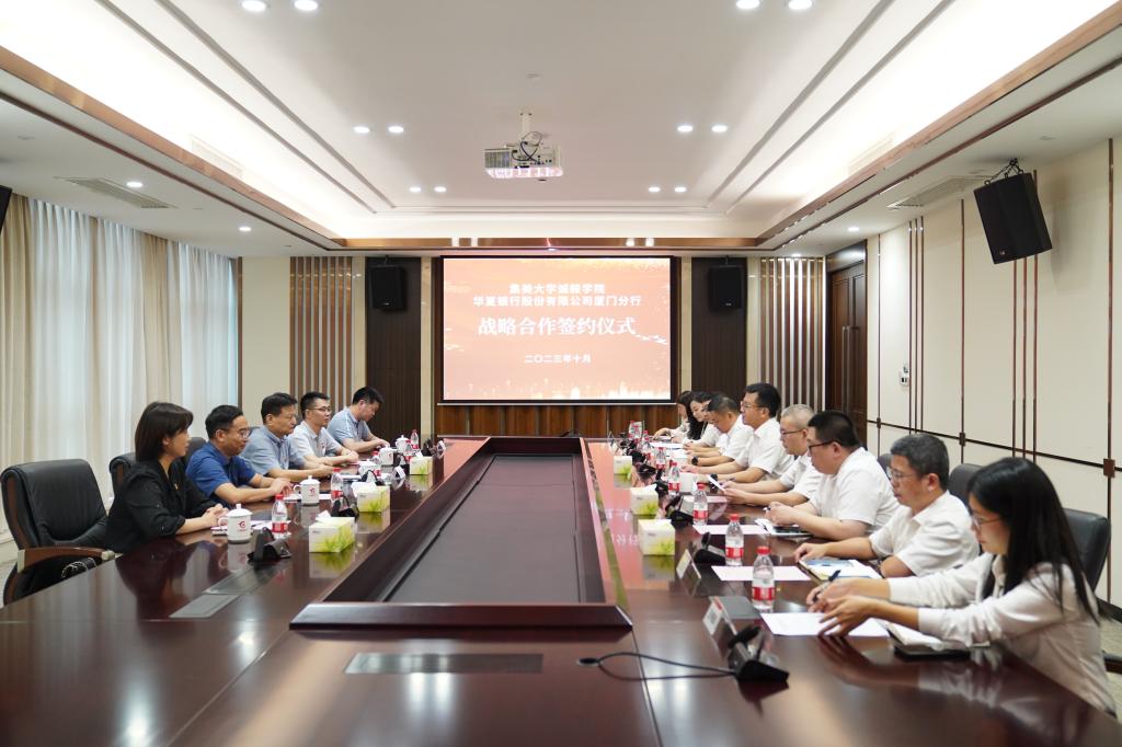 10月12日下午,我院与华夏银行股份有限公司厦门分行在华夏银行厦门分行大楼23楼会议室进行战略合作签约仪式。华夏银行厦门分行党委书记、行长张志勤,党委委员、副行长曾秉义,党委委员、副行长黄纪锋及相关部门负责人,我院党委书记罗钫、院长姚进忠、副院长陈三明及相关部门负责人等参加仪式。