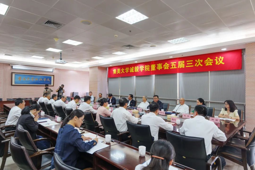 11月15日,集美大学诚毅学院董事会五届三次会议在景祺楼17楼会议室召开,会议研究董事会组成人员调整事宜,根据《集美大学诚毅学院章程》规定,会议推举校党委书记沈灿煌同志兼任诚毅学院董事会董事长。