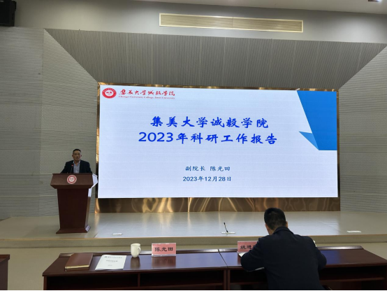 陈光田作题为《凝心聚力、担当作为,开启科研工作新征程》的科研工作报告。报告总结回顾2023年学院在完善科研管理制度、加强科研项目全过程管理、推动科研平台和团队建设、营造良好学术氛围等方面的情况,安排部署2024年科研工作重点。陈光田希望全院教师要顺势而为,按照学院科研工作的总体部署,以高度的责任感、使命感和紧迫感积极开展工作,为提升学院科研整体竞争力而共同努力。