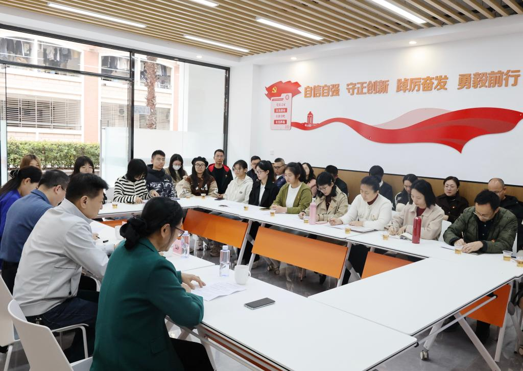马克思主义学院党支部书记、副院长郑铭围绕“3.18”重要讲话精神,介绍支部“一核两翼三融合”工作模式的经验和做法。思政课是立心立魂、强基固本、立德树人的关键课程。党支部创新党建工作模式,结合“大思政课”和一流课程建设要求,强化党建和业务深度融合,用“故事党课”突出党建业务的融合互促,用“四个课堂”突出“三会一课”思政特色,用“理论宣讲”拓展党性教育的思政空间。