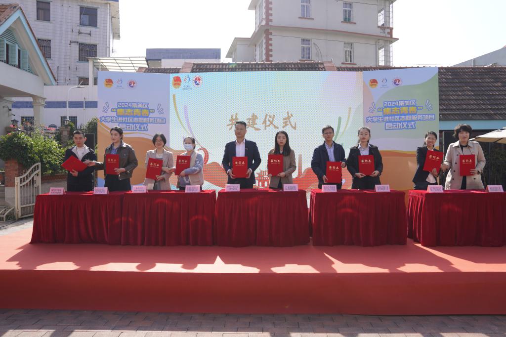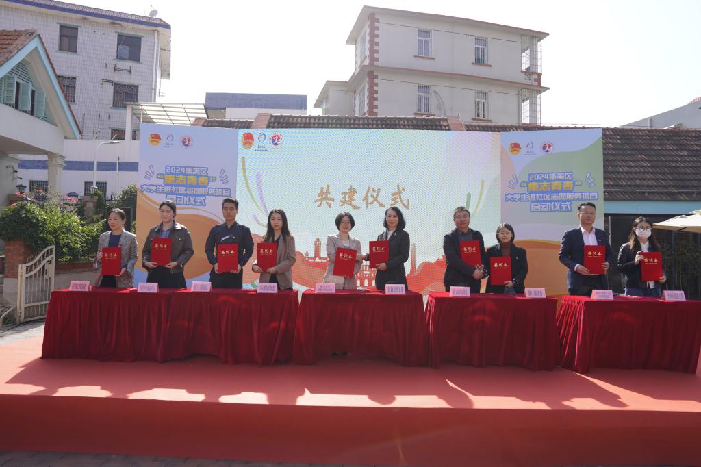 为深入推进集美区青年友好城区建设,整合高校志愿服务资源,搭建青年建功集美的平台和舞台,吸引辖区青年大学生更好走进集美、认识集美、融入集美,3月20日上午,集美区“集志青春”大学生进社区志愿服务项目启动仪式在集美街道嘉庚书房举行。启动仪式上,我院分别与区教育团工委、侨英街道结对共建开展志愿服务。