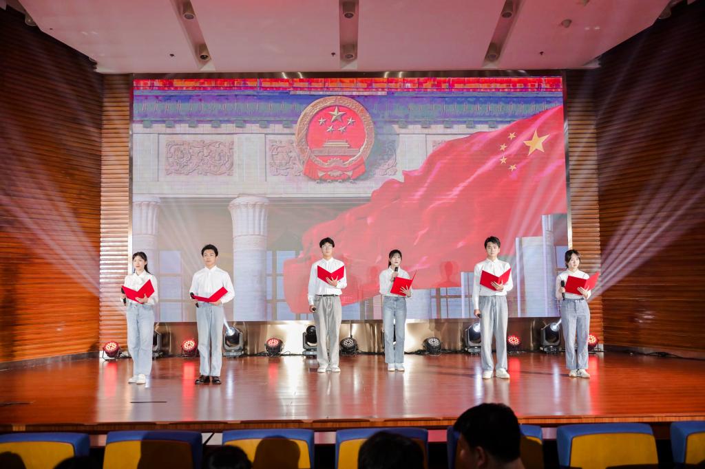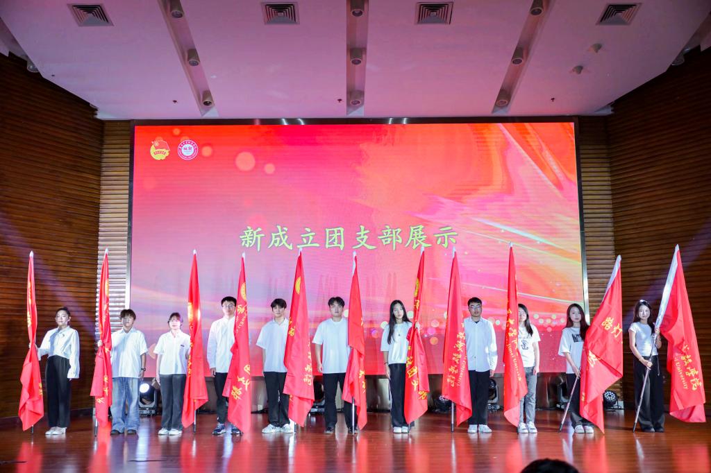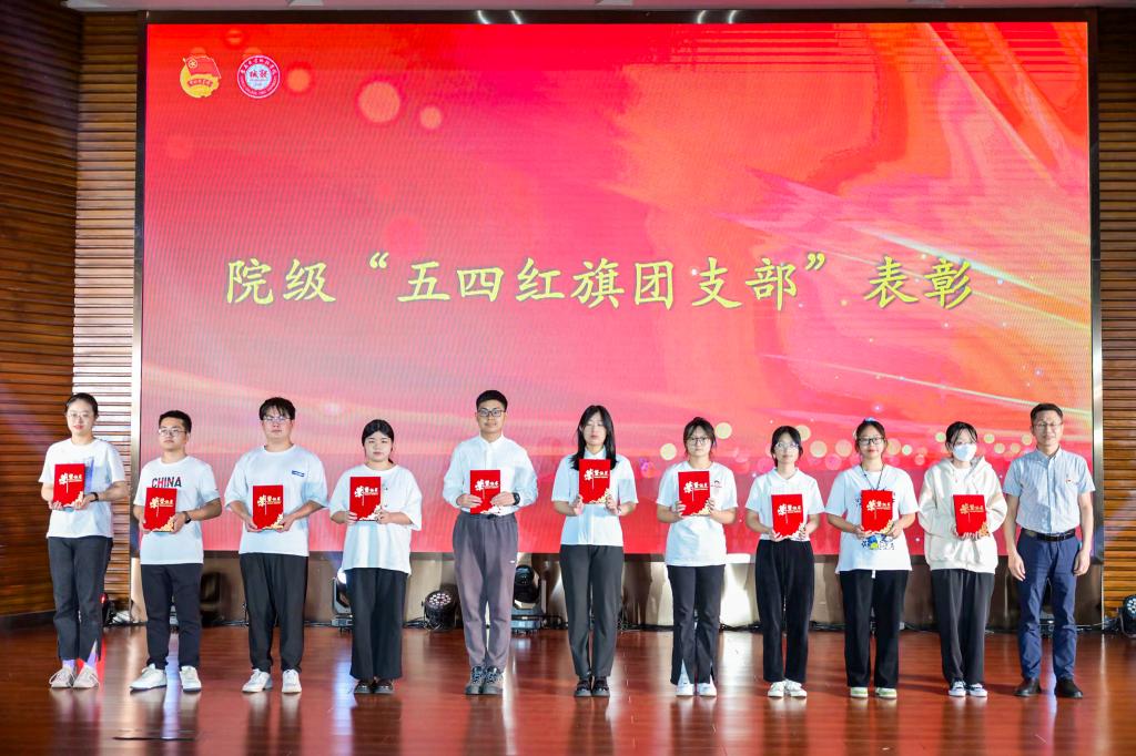 大会在庄严的国歌声中拉开帷幕,主持人宣读了过去一年,我院团员青年在团内各类评优评先、学科竞赛、创新创业比赛等领域的获奖情况,大会依次为院级“五四红旗团支部”“优秀共青团干部”“优秀共青团员”“优秀青年志愿者”代表颁奖。会上,2023年在院学生会、诵读协会等院级学生组织和社团中成立的11个功能型团支部也一同亮相。