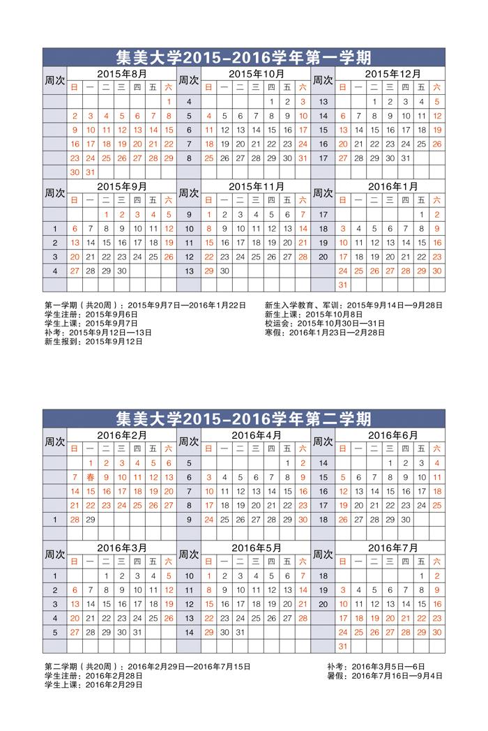 集美大学2015-2016学年校历